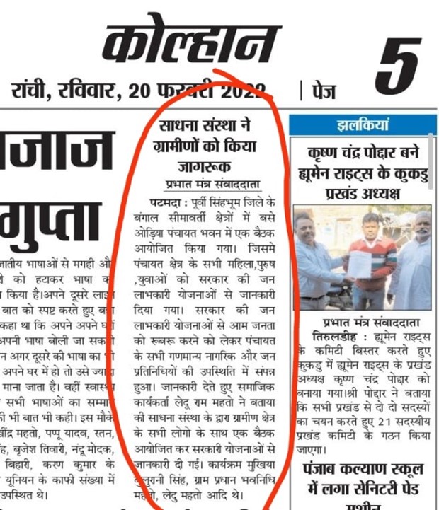 Interactive session on land of commons based livelihood: An interactive meet with local leaders , experts in the village and the local women was organized on 26th of March, 2022 at Chirudih village in Patamda. A detailed discussion was held on the challenges of seeking livelihood opportunities through land-based actions. Altogether 45 participants, including 41 women were present on this occasion.