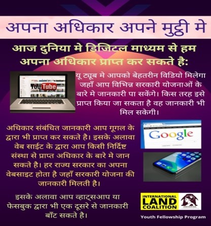 Flex banners, highlighting the need for digital empowerment and how it may help and support the women and youth to access government schemes on land, job and housing have been prepared. These are displayed during the awareness meets and trainings.