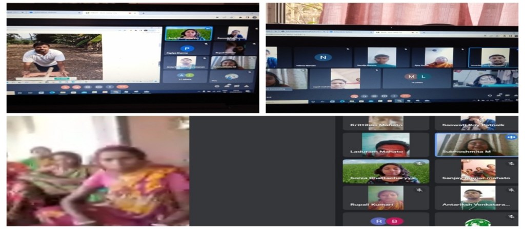 Seminario web para jóvenes rurales: El 24 de abril de 2022 se organizó una orientación en línea donde los jóvenes rurales aprendieron sobre agricultura sostenible y acceso a esquemas gubernamentales. Les brindó la oportunidad de contar con expertos de los campos relevantes como el Dr. Subhoshmita Mondal y la Sra. Sonia Bhattacharya. Esta fue la primera experiencia de los jóvenes y mujeres rurales en asistir a un seminario web e interactuar con expertos urbanos. Entre los 56 participantes, 36 se unieron colectivamente como diferentes grupos utilizando un solo dispositivo. La sesión fue muy apreciada por todos los participantes. Se han planificado más sesiones de este tipo en los próximos días.